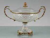 FINE ITALIAN CRYSTAL - HAND CUT - BRASS HANDLES RIM AND BASE - 18LX13WX15H