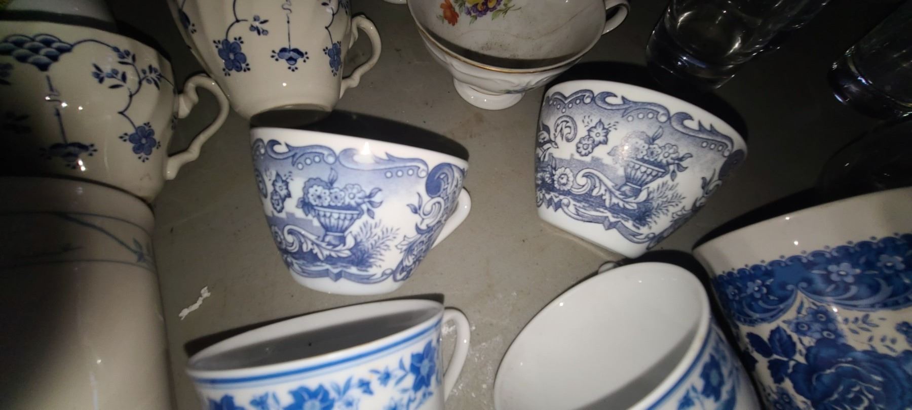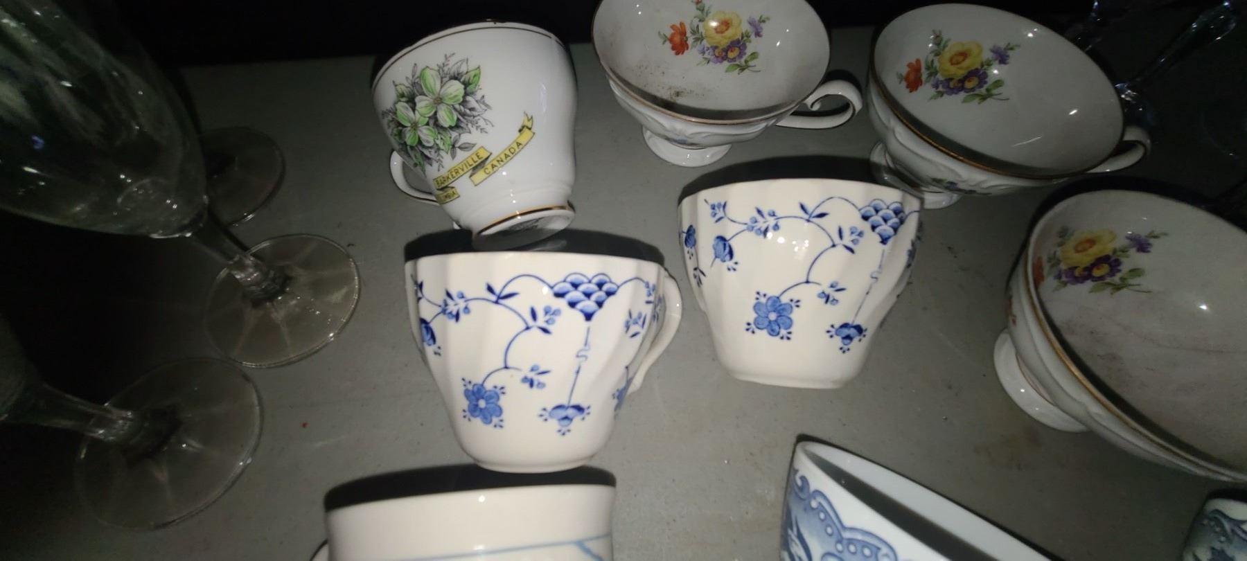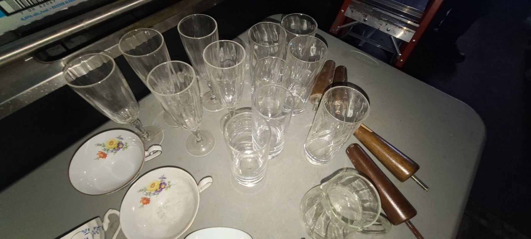 CRYSTAL AND CHINA, GLASSES, CUPS AND MISC