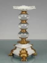 FINE ITALIAN CRYSTAL - WHITE GLAZED PORCELAIN BASE AND FLOWER CANDLEHOLDER - BRASS FOOTING AND ACCENTS - 6.5LX5.8WX16H