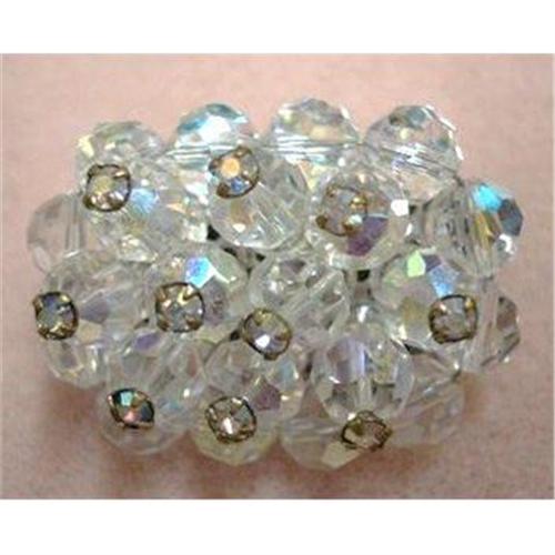 BEAUTIFUL CRYSTAL BEADS AND TINY RHINESTONES OVAL BROOCH - THIS IS HIGH QUALITY BROOCH PROBABLY MADE BY SHERMAN BUT NOT SIGNED, EACH BEAD IS HIGHLY FACETED AND FINISHED WITH TINY RHINESTONE HELD BY 4 CLAWS - as per images - Measures about 1 1/2" long x 1" wide and 1/2" high - Excellent condition,US Buyer to pay 7.00 for shipping plus insurance.THANKS.