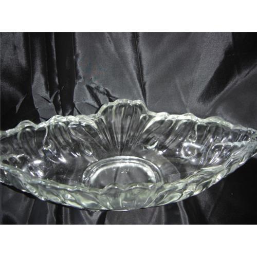 DIFFERENT BOWL I HAVE EVER SEEN. IT VERY HEAVY THICK GLASS 16 INCHES LONG AND 5 INCHES ACROSS. SHAPED LIKE A BANANA BOAT. SMALL CHIP ON THE TOP OF RUFFLE BUT CANNOT SEE.