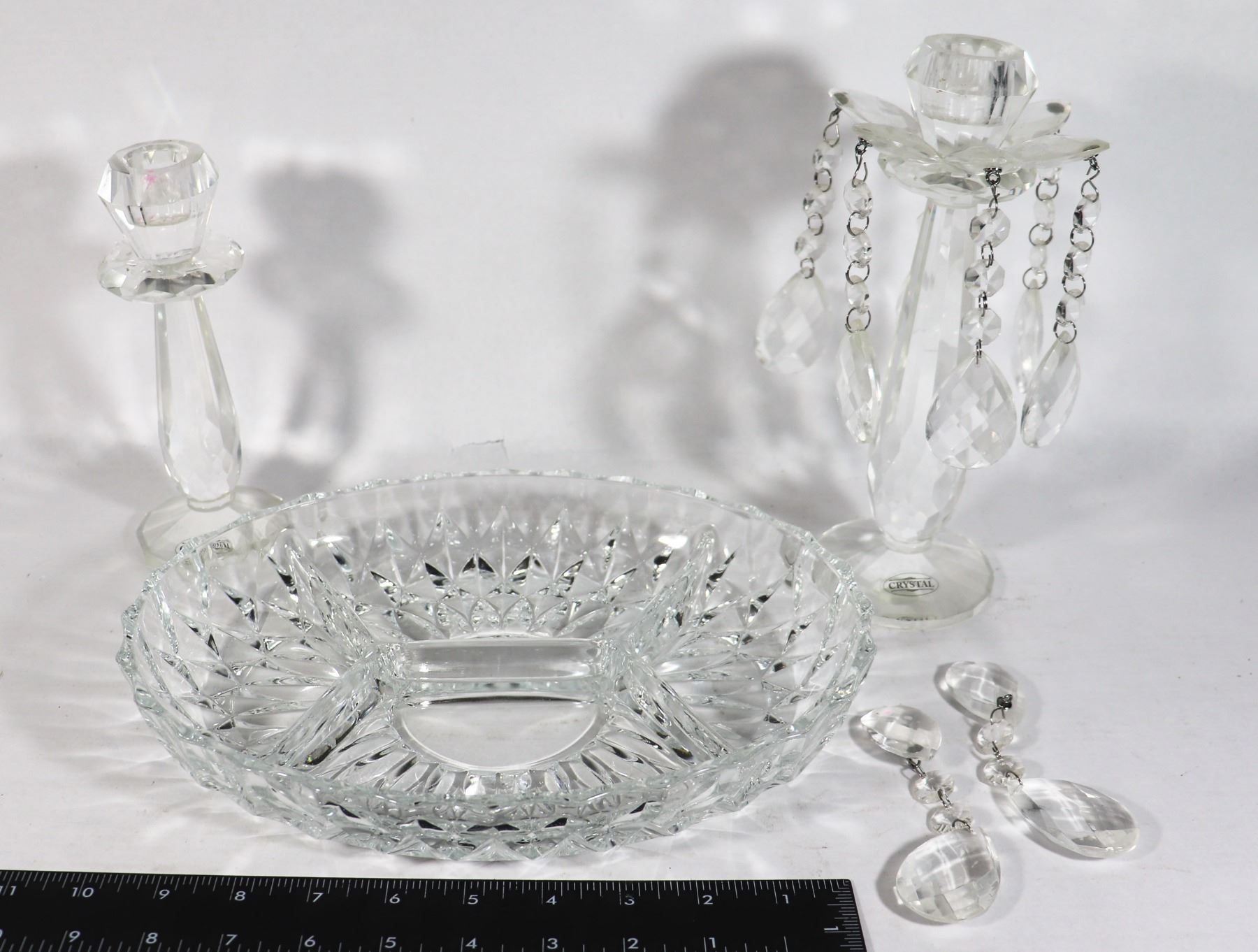 CRYSTAL BOWL SOLD W/ X2 CRYSTAL CANDLE HOLDERS