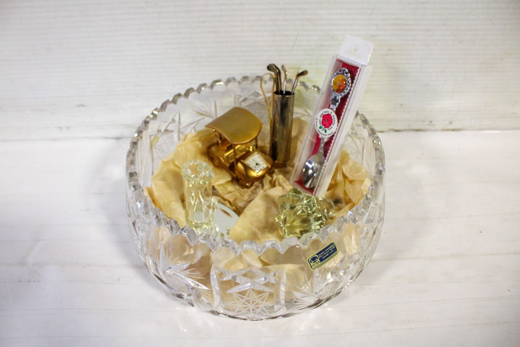 CRYSTAL BOWL WITH VINTAGE GOLF ITEMS - ESTATE