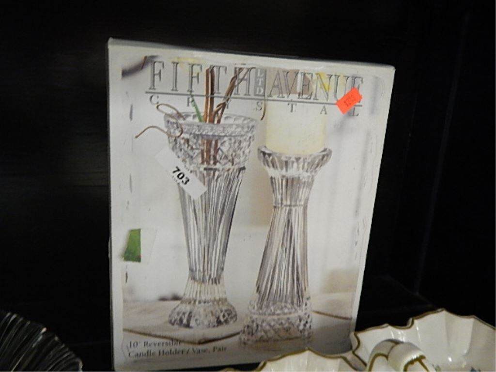 CRYSTAL CANDLE HOLDERS - FIFTH AVENUE - 10" - IN BOX