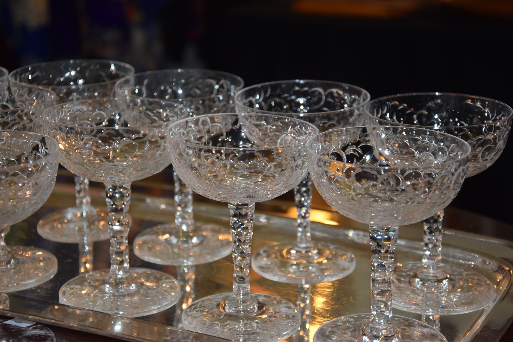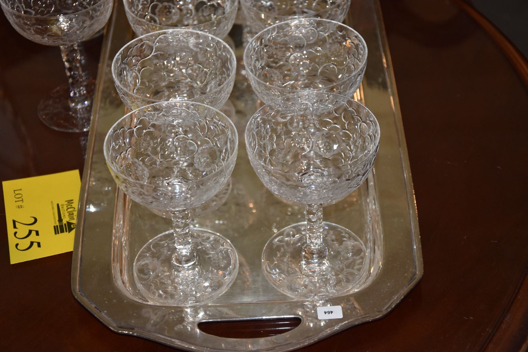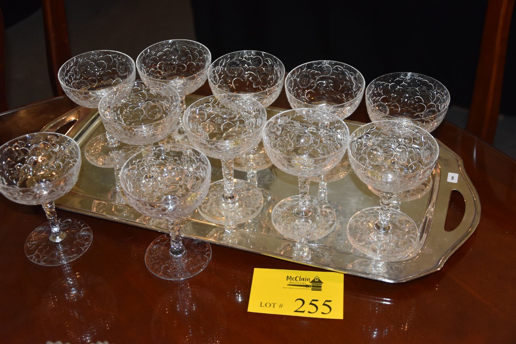 CRYSTAL CHAMPAGNE/TALL SHERBERT, BROOKDALE BY THARAUD, JUSTIN & SILVERPLATED SERVING TRAY (12 PCS)