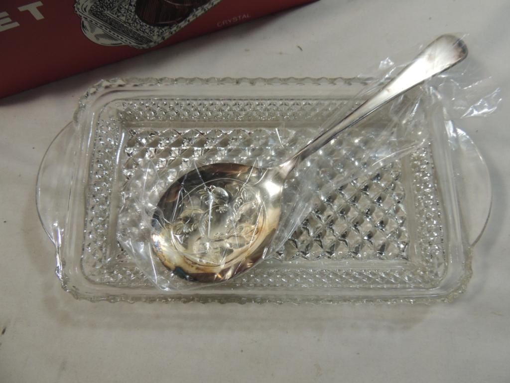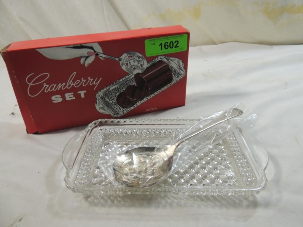 VINTAGE CRYSTAL CRANBERRY SET NEW SET VINTAGE SET DECORATIVE SERVING SET AS SHWON SEE PHOTO FOR MORE DETAILS.