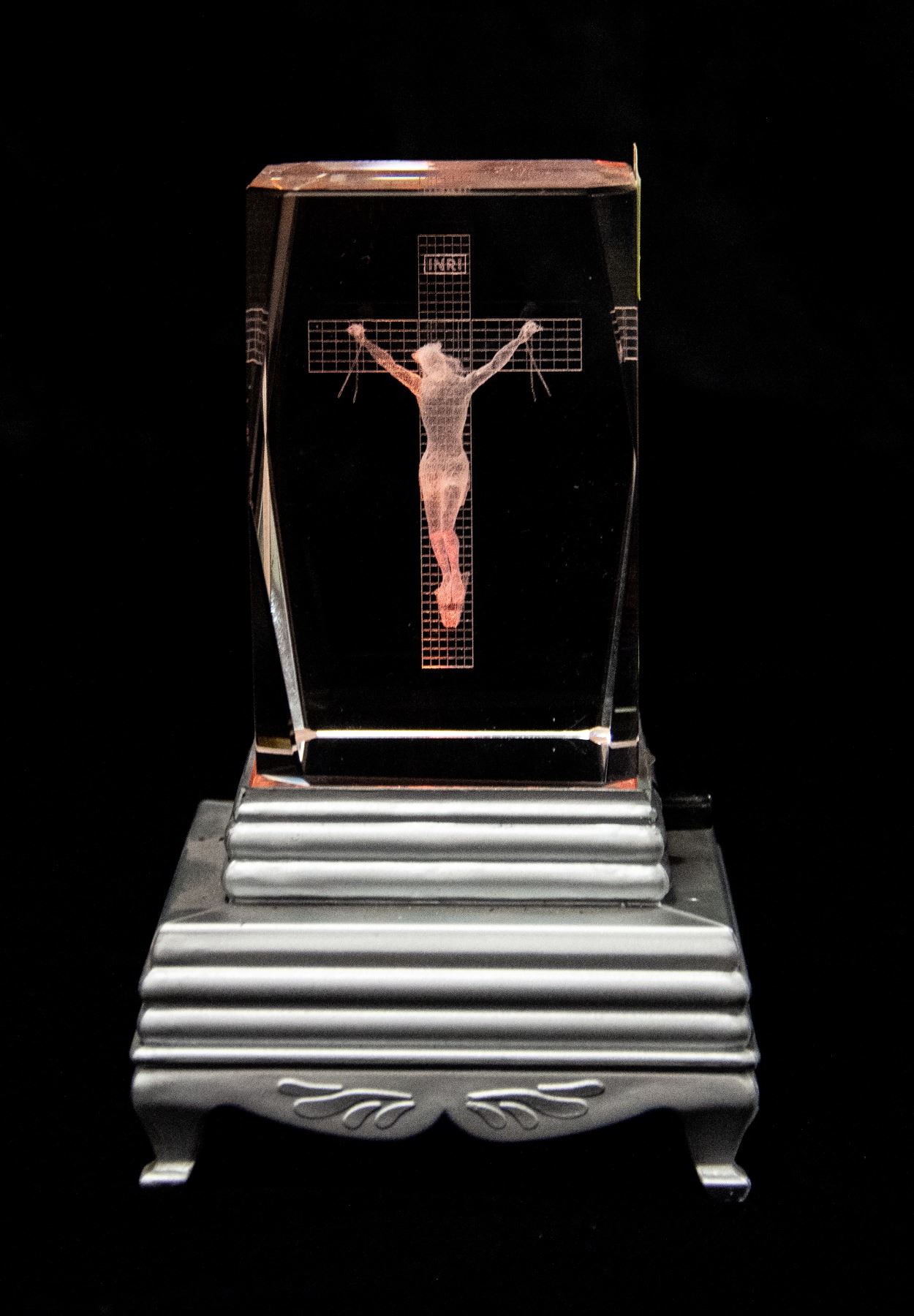 CRYSTAL CRUSIFIX WITH LIGHT STAND