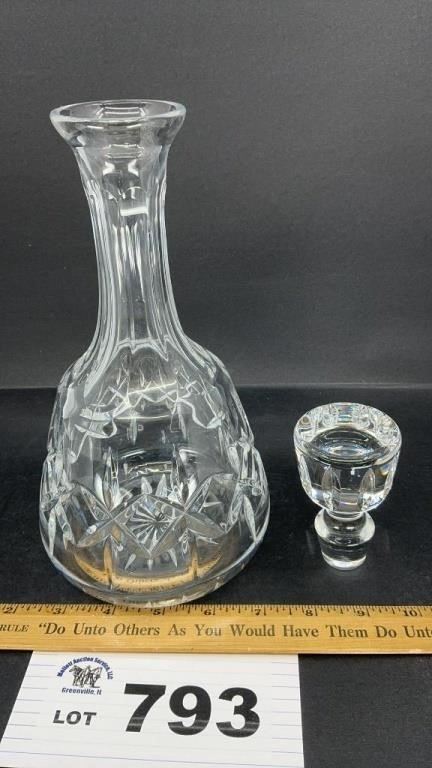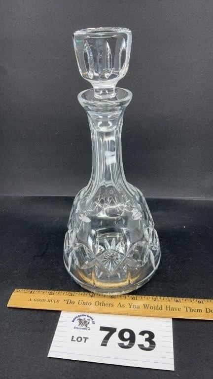 CRYSTAL DECANTER WITH STOPPER, 10 INCHES TALL