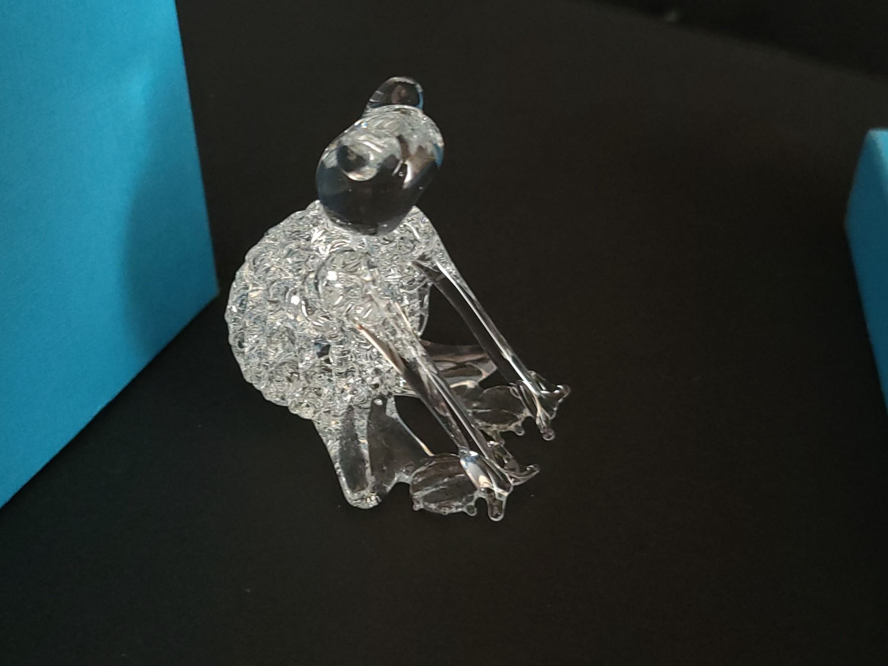 CRYSTAL GLASS FROG IN BIRKS BOX. MEASURES 2' X 2"