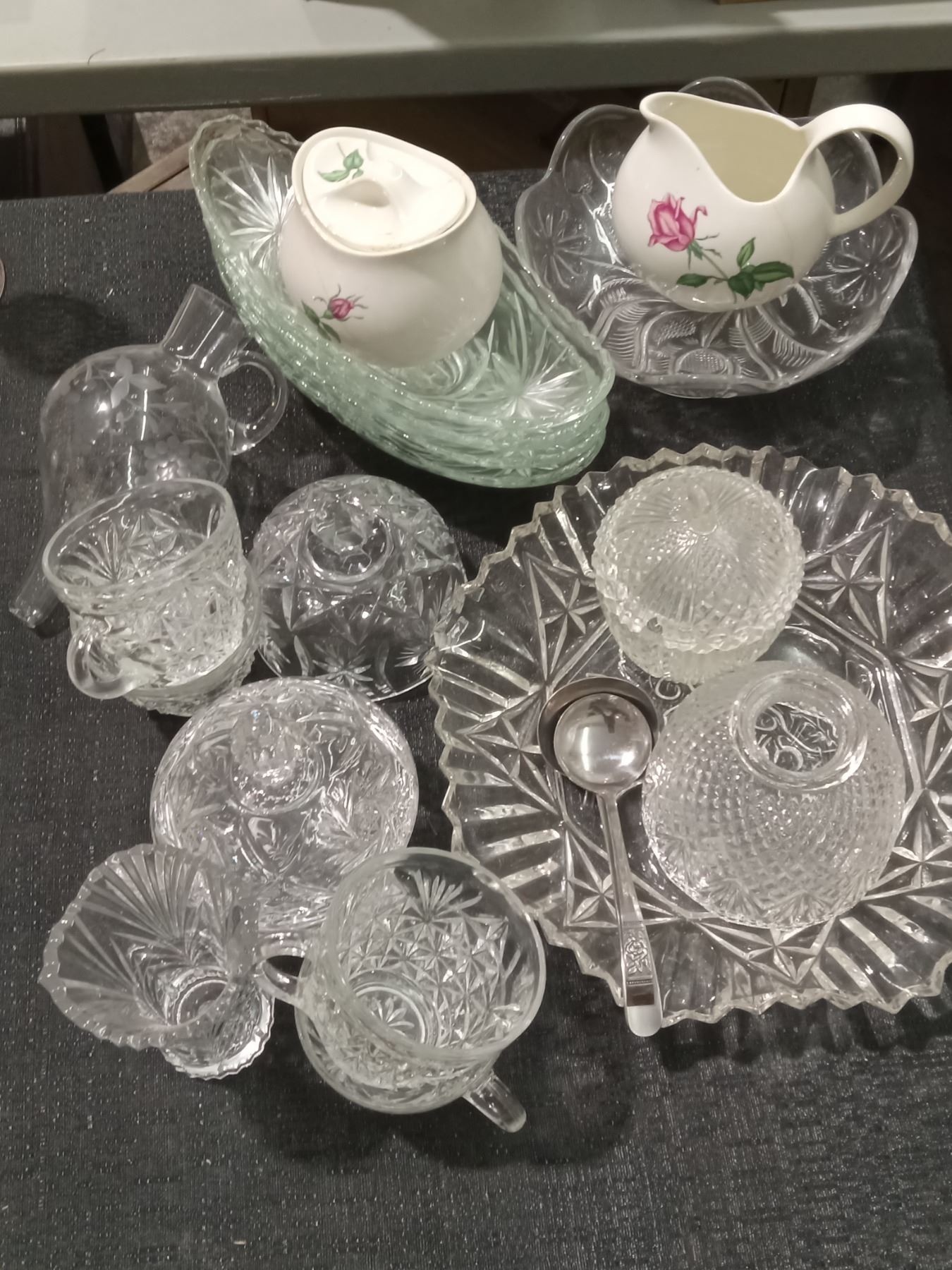 CRYSTAL & GLASS FRUIT/CAKE BOATS & SERVER