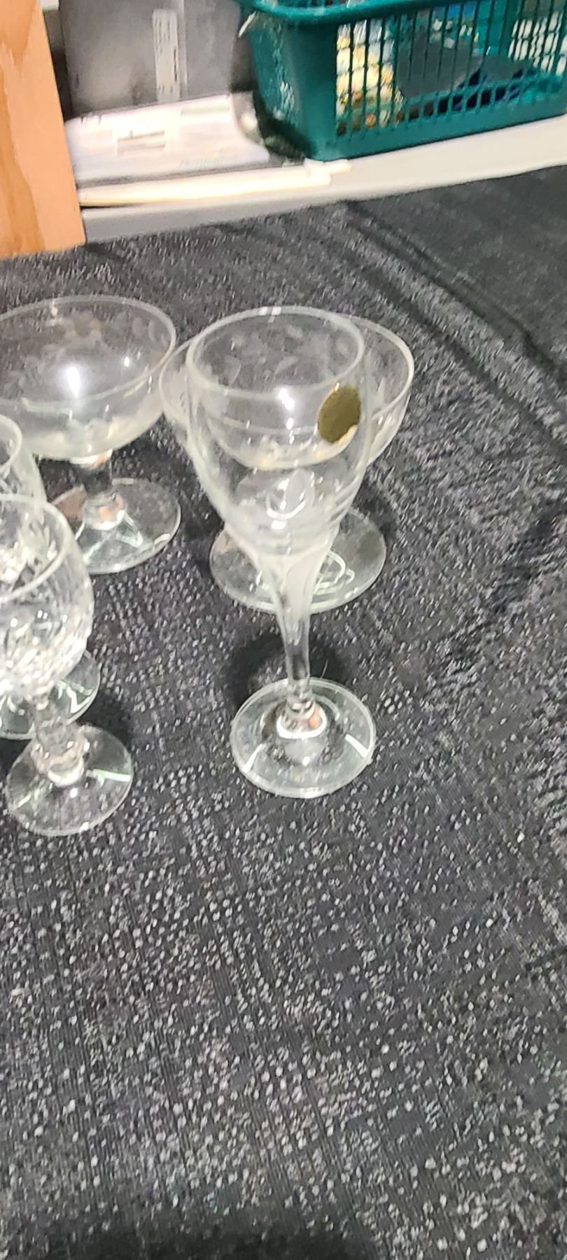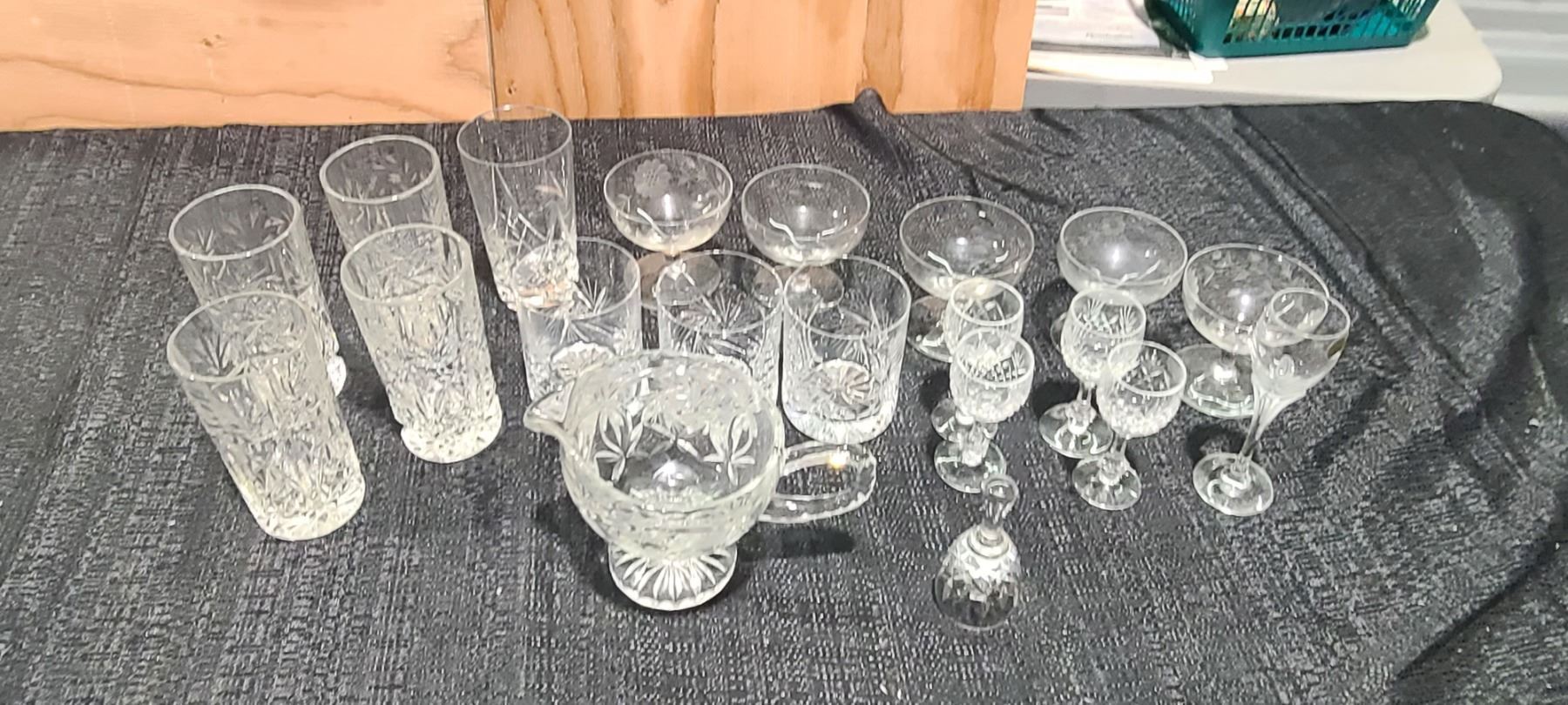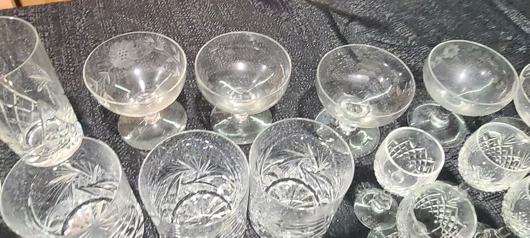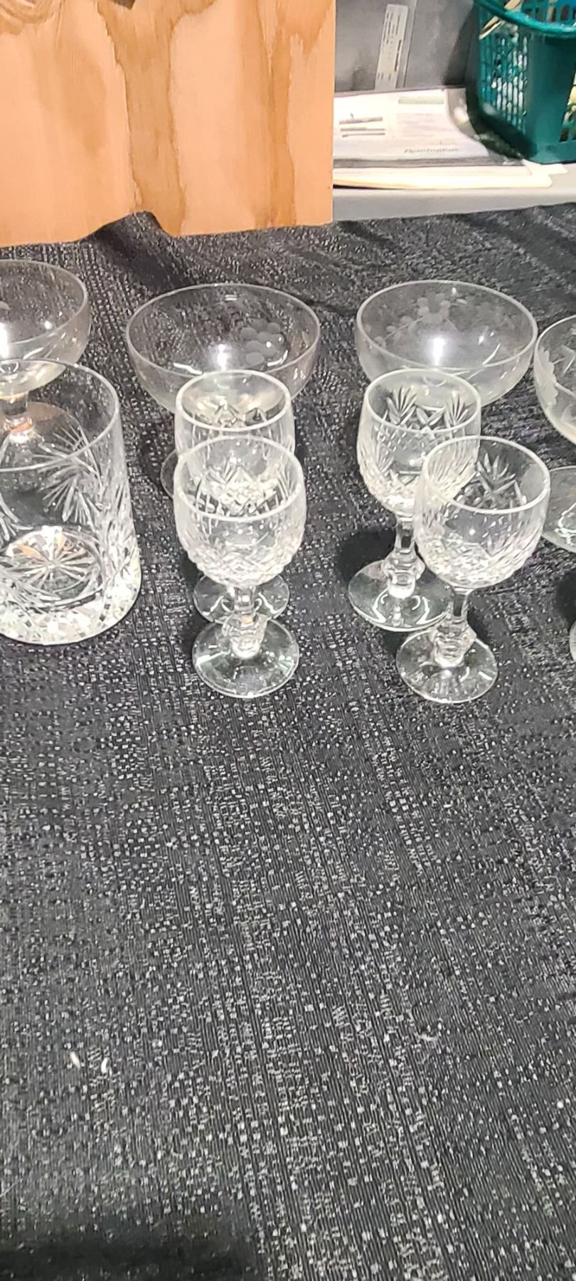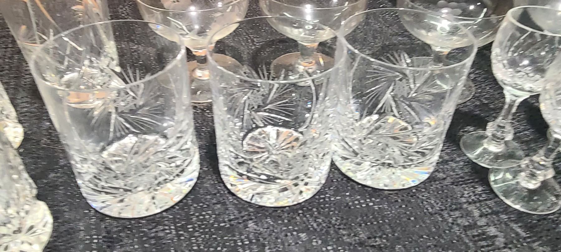 CRYSTAL HIGHBALLS AND ASSORTED LIQUOR GLASSES. SEE PHOTOS.
