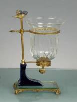ITALIAN CRYSTAL CANDLEHOLDER AND LOWER BASE - BRASS BASE AND FOOTING - PORCELAIN ARM - HAND PAINTED PORCELAIN BIRD - 9.3LX6.8WX17H