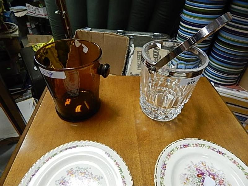 CRYSTAL ICE BUCKET & AMBER GLASS IC BUCKET = 2 TTL