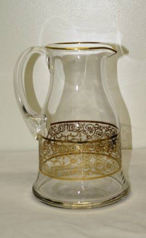 CRYSTAL ITALIAN JUG / PITCHER- VENETIAN HAND PAINTED 14 KT GOLD ARTWORK - 7L" x 6W" x 9H"