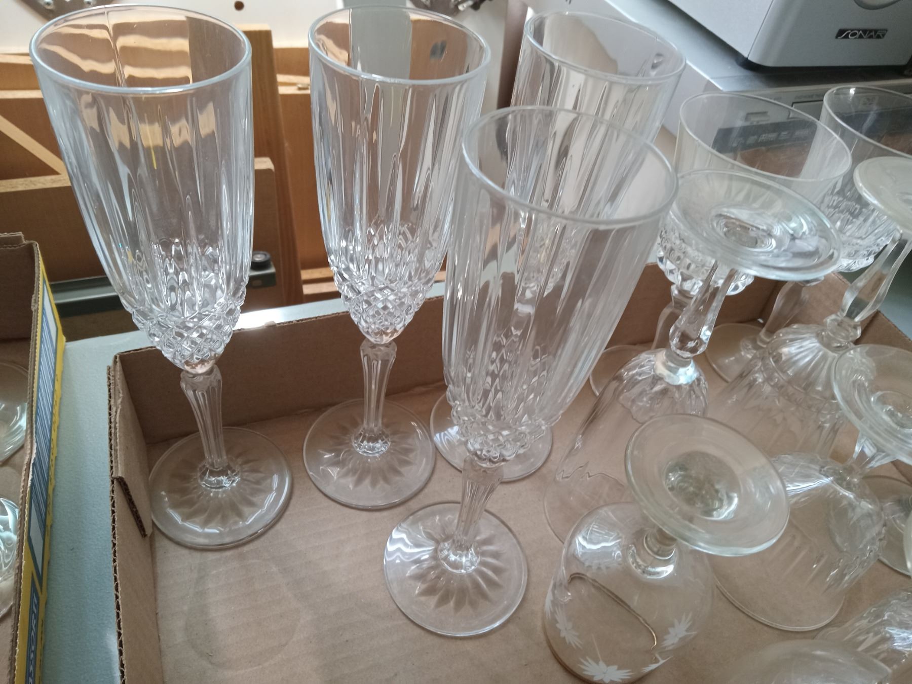CRYSTAL 'PINWHEEL' STEMWARE (CHAMPAGNE FLUTES & WINE GLASSES); MARTINI GLASSES; VARIOUS WINE STEMWARE & BENTO - TEAPOT & CUP SET