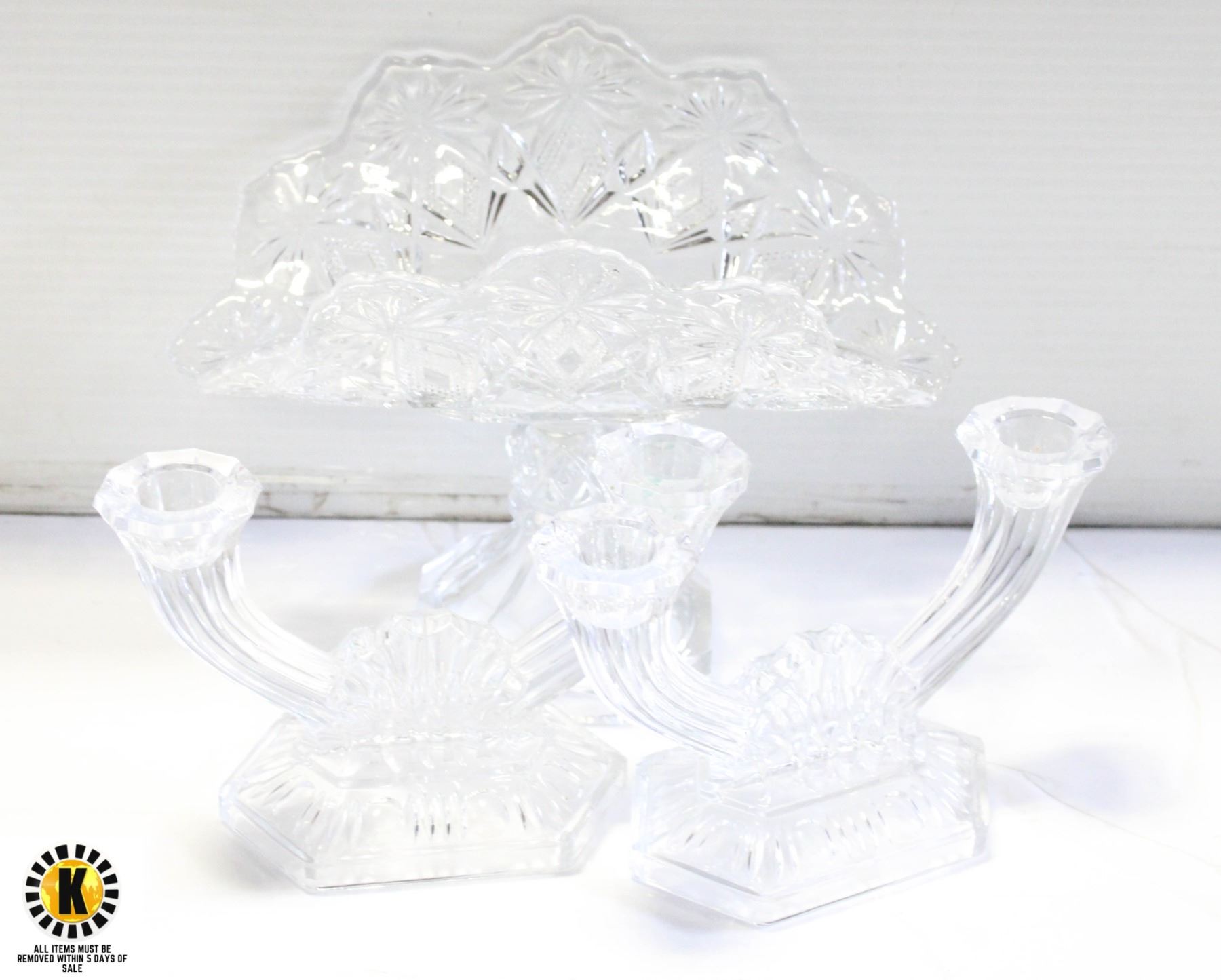 CRYSTAL PLATE AND SET OF CANDLE HOLDERS