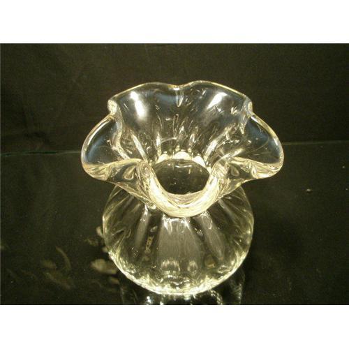 WE PRESENT TO YOU A JOHN WALSH WALSH POSY VASE, EARLY 1900'S SHOWING A POLISHED POTIL, WITH A BULBOUS BODY, RIBBED AND PANELED IN THE CENTER, THEN MOVING UP TO A RUFFLED, FLARED OUT TOP.ALL IN A NICE HEAVY CRYSTAL, APPEARING TO BE HAND BLOWN.