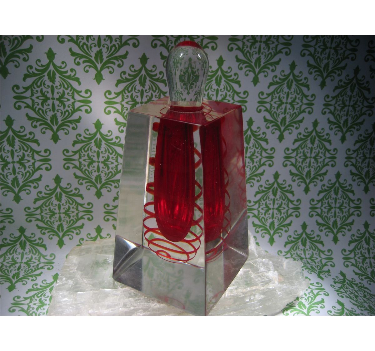 (1) CRYSTAL RED SWIRL PERFUME BOTTLE