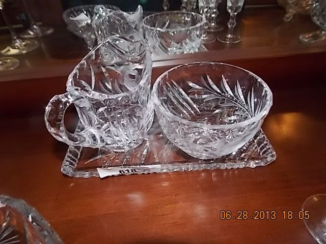 CRYSTAL ROSE PATTERENED - CREAM & SUGAR & TRAY