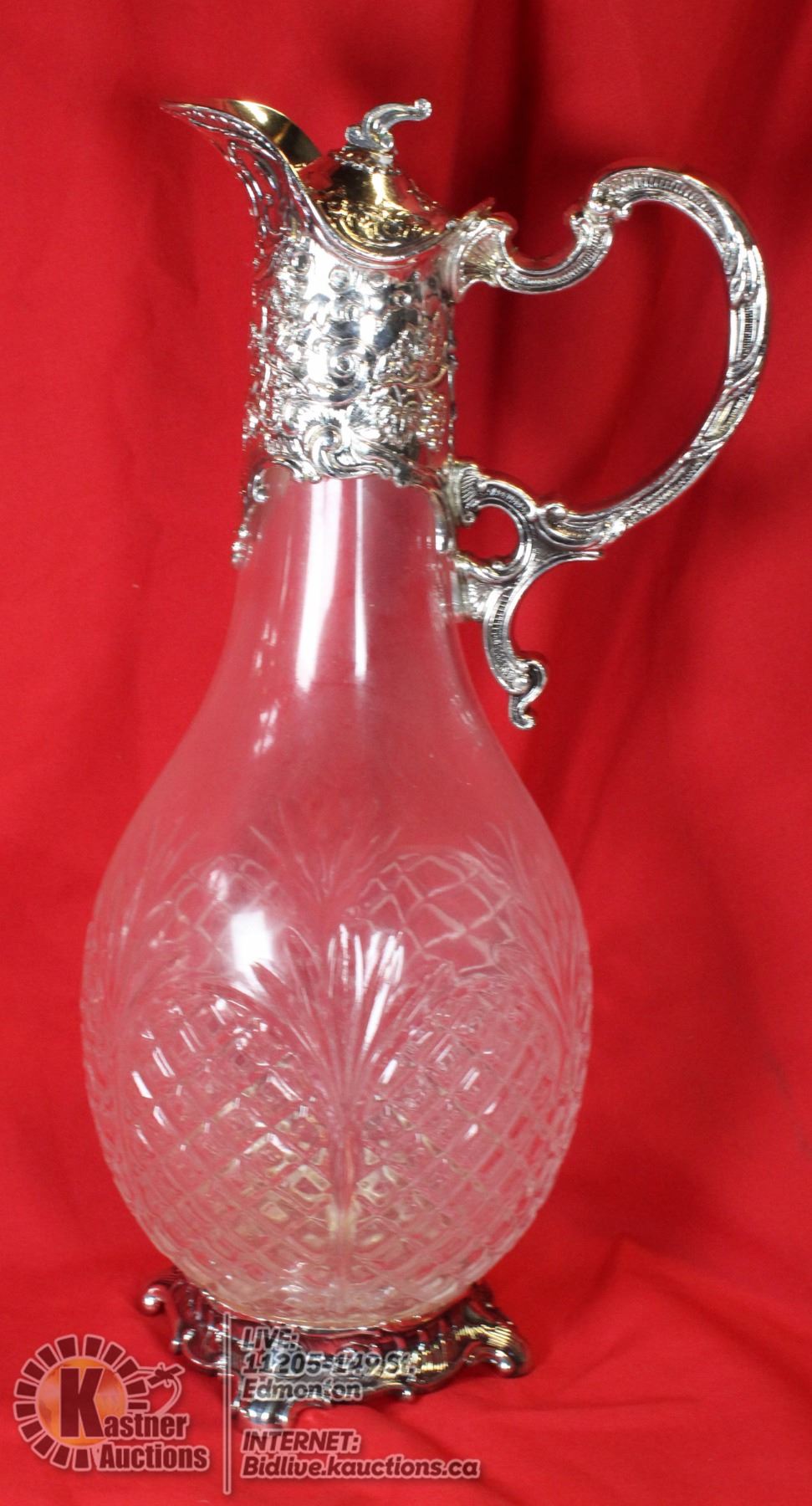 CRYSTAL & SILVER DECANTER- NEW IN BOX