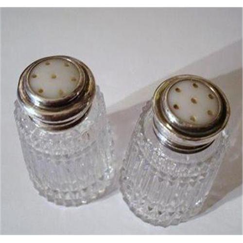 HERE IS PAIR OF LOVELY CRYSTAL AND STERLING TOP, SALT AND PEPPER SHAKERS,each stands about 3" high, excellent condition,US BUYER TO PAY 7.00 FOR SHIPPING PLUS INSURANCE.THANKS.