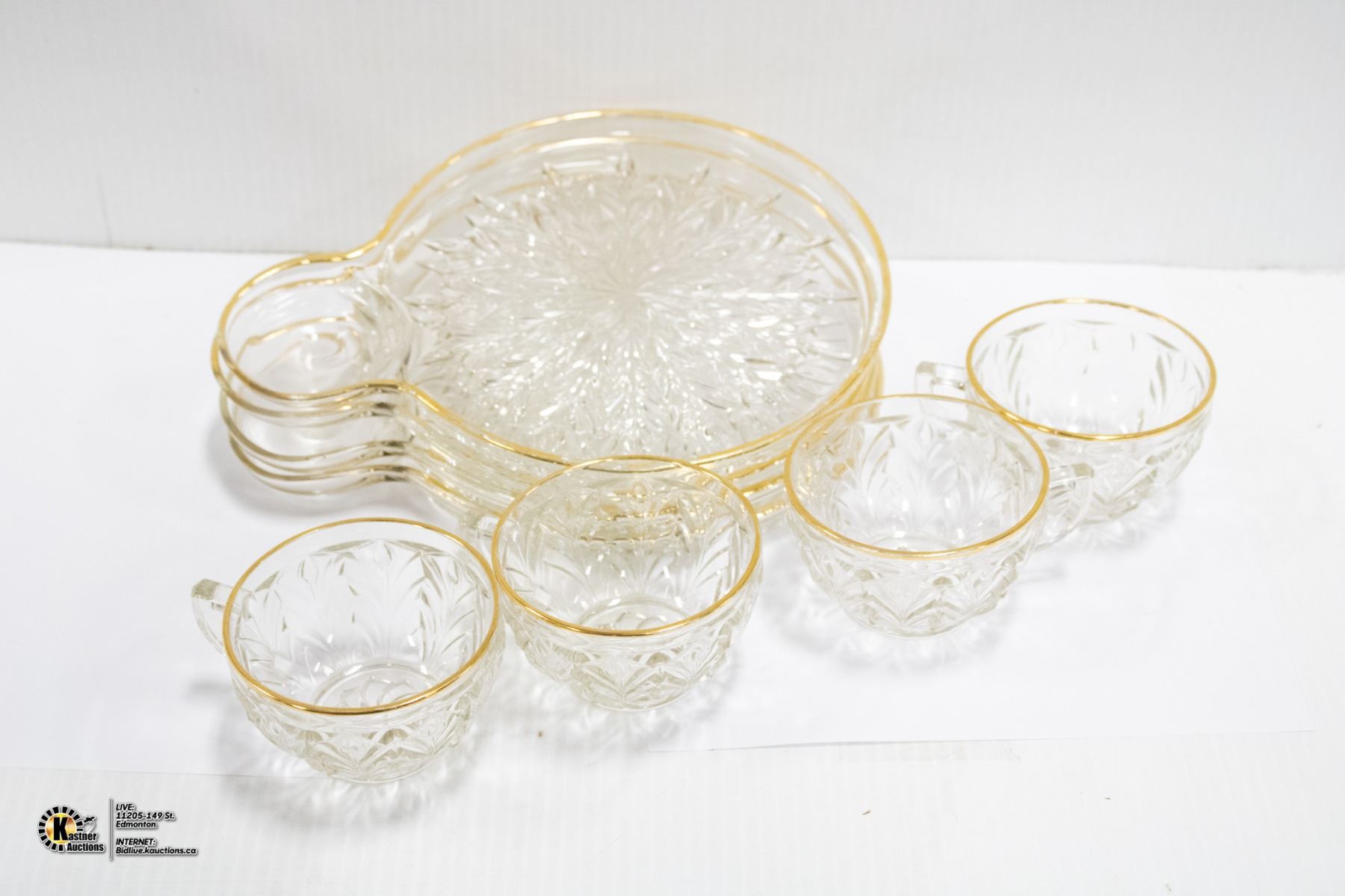 CRYSTAL STYLE TEA CUPS + SAUCERS