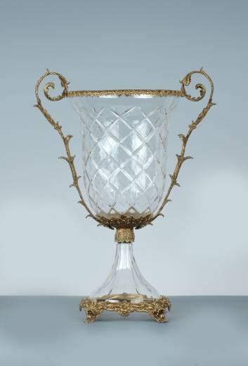 ITALIAN CRYSTAL - HAND CUT DESIGN - BRASS HANDLES RIM AND BASE - 14LX9WX19H