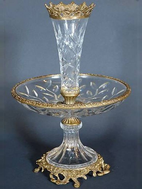 CRYSTAL VASE AND BOWL W/ BRASS TRIM - FINE ITALIAN LEAD CRYSTAL - INTRICATELY HAND CUT - BRASS CROWN,TRIM AND BASE - 10W" x 10D" x 13.5H"