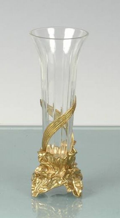 FINE ITALIAN LEAD CRYSTAL VASE - BRASS BASE AND TRIM - 3.7L" x 3.7W" x 10.6H"