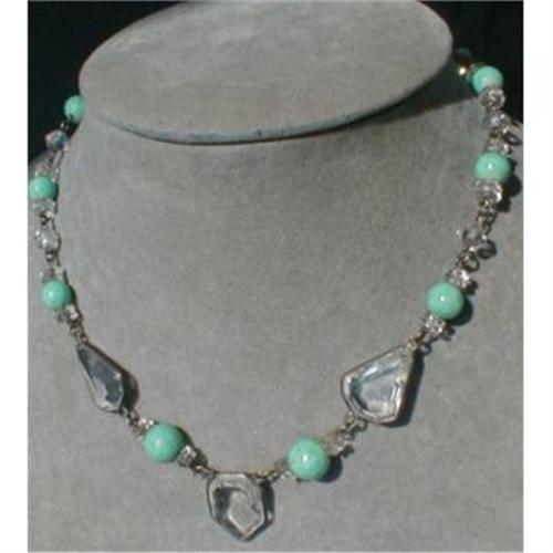 <tr><td>Title:CRYSTALS Beads NECKLACE Green VINTAGE Czech</td></tr>