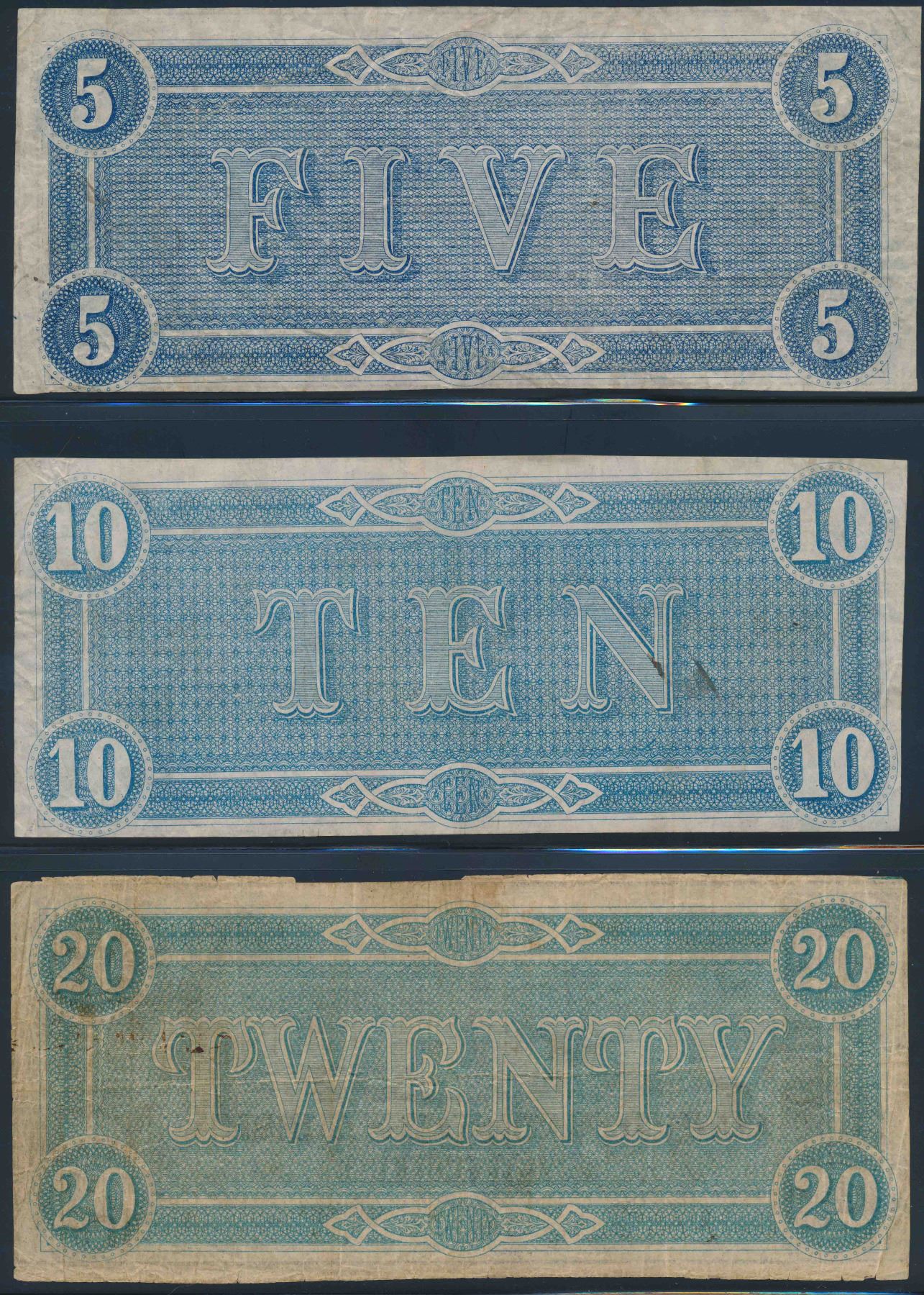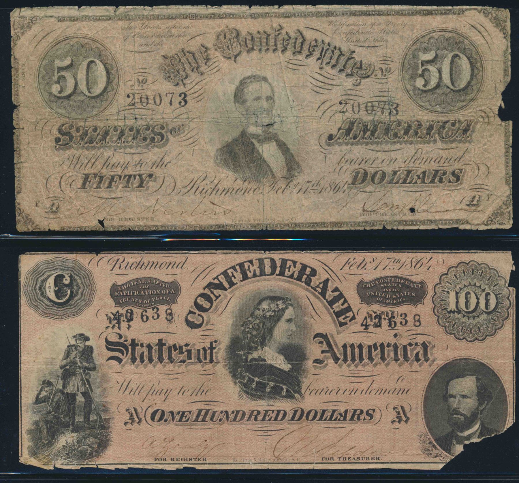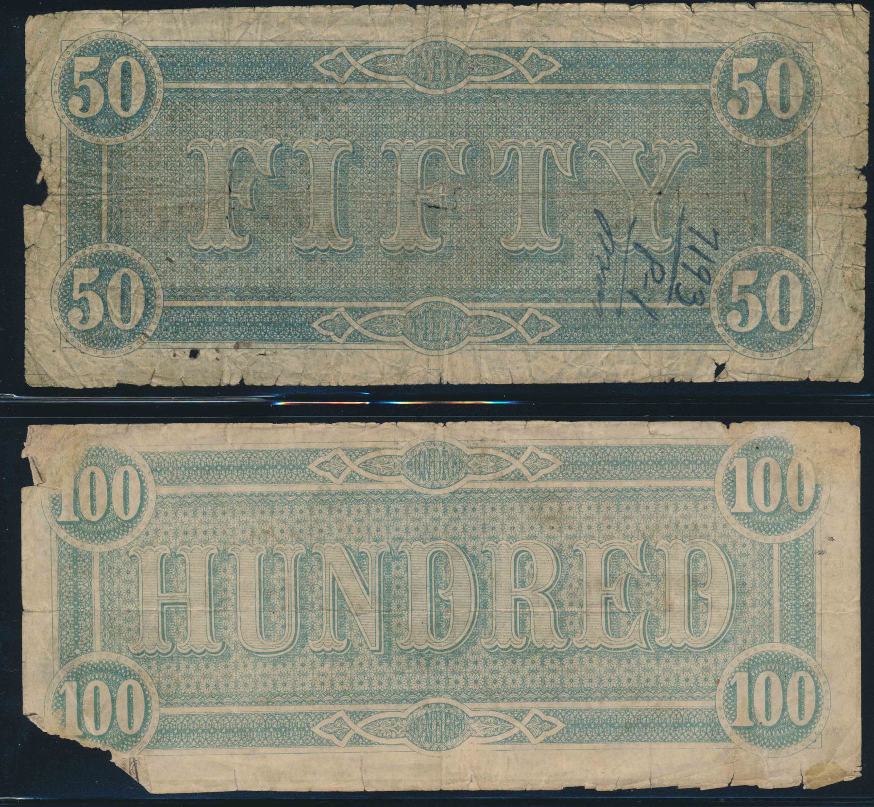 $5, $10, $20 are F; $50 and $100 are G. $100 missing bottom right corner.