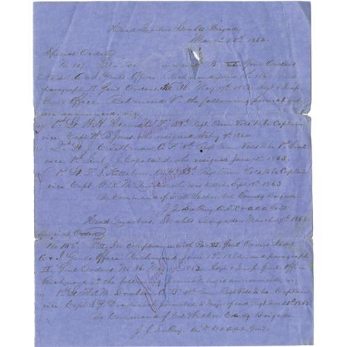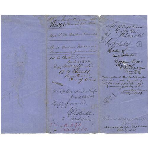 <B>Three Confederate Generals Sign the Same Document.</B></I> Otho F. Strahl, Wm. J. Hardee, and William W. MacKall all endorse a lengthy list of replacements and promotions, March 27-19, 1864. Excellent, very clean condition, with one small hole. 7.5" x 9.5" unfolded. All three are scarce autographs.<BR><BR><b>Shipping:</b> Small Flat (<a target="_blank" href="http://www.heritageauctions.com/common/shipping.php">view shipping information</a>)