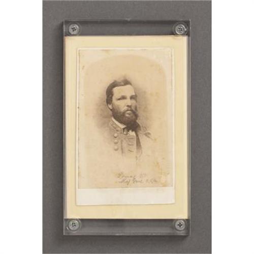 <B>CONFEDERATE MAJOR GENERAL LUNSFORD LINDSAY LOMAX ARCHIVE.</B></I> Consists of an ALS, a signature, a <I>carte de visite</B></I>, his pocket watch with chain, his father's seal ring, and a copy of his mother's book. Details of items as follows:<BR><B><BR>Autograph Letter Signed</B></I> "L. L. Lomax". 1¼ pages (front and verso), 8" x 10.5", on War Records Office letterhead, Washington, November 12, 1895, to a Col. Robb Corlin. He writes, in part: "<I>I have delayed in thanking you for the photographs enclosed in your letter of Oct 31- hoping I could send you those you requested. I found a party here who has negatives of most of the Confederate Generals, who is willing to furnish copies at 25¢ a pieceā¦</B></I>" Lomax worked at the War Records office from 1894, helping to assemble and edit the Official Records of the Civil War. Fine.<BR><B><BR>Signature with Rank</B></I> "<I>Yours truly/ L. L. Lomax/ Maj Genl C.S. Cavly</B></I>", on card, 4.25" x 2.5." Fine.<BR><B><I><BR>Carte de Visite</B></I></B></I> of Lomax in uniform with pencil notation in unknown hand on front "Lomax Va Maj Gen C.S.A.", 2.25" x 3.25" image mounted to slightly larger card.<BR><BR><B>Pocket Watch with Key.</B></I> An 18K gold open face watch with a key wound (through rear) diamond jeweled fusee movement. The movement is marked "Jos. H. Johnson Liverpool 1789". On the inside of the back cover is engraved "L. L. Lomax." The watch is currently in working condition. <BR><BR><B>Watch Fob Seal- </B></I>attached to the watch chain,<B> </B></I>formerly belonging to his father, Mann Page Lomax, a major of ordnance in the U.S. Army. On the back of this fob are the initials "ELL" who was Mann's wife, Elizabeth Lindsay Lomax. They float over a lock of her hair. Two wax examples of this seal are included showing the initials "MPP" and the heraldic crest.<BR><BR><B>Virginia Staff Officers Button </B></I>with state seal, also attached to the chain, 15mm, marked on the back "Mitchel & Tyler, Richmond."<BR><BR><B>Elizabeth Lindsay Lomax: </B></I><B><I>Leaves From an Old Washington Diary 1854-1863</B></I></B></I> (New York: E. P. Dutton and Company, 1943). A book of excerpts from the diaries of General Lomax's mother. Excellent content with mentions of many famous names of the period.<BR><BR>Lunsford Lindsay Lomax (1835-1913) had a strong military background. His grandfather, Colonel William Lindsay, a friend of George Washington, fought in the light horse cavalry of Harry Lee during the Revolution, losing an arm in battle. His father, Major Mann Lomax, fought in the Creek and Seminole Indian Wars, and was chosen as one of the officers to form the Ordnance Corps. The young Lomax was educated at Richmond and Norfolk and was appointed cadet-at-large to West Point where he attended classes, and became friends with, Fitzhugh Lee. He graduated in 1856 (21 of 49) and served in the 1st and 2nd cavalries in the west until the Civil War broke out. Resigning his commission on April 25, 1861, he offered his services to Virginia, and was appointed captain in the State forces April 28th. He was assigned to Joseph E. Johnston's staff as assistant adjutant general, later serving as inspector general for Benjamin McCulloch. He was appointed colonel of the 11th Virginia Cavalry in time for the Gettysburg campaign; Lomax was promoted to brigadier general after the battle. Lomax's brigade fought under the command of his old classmate Fitzhugh Lee until he was promoted to major general in August 1864. He was then assigned to Jubal Early in the Shenandoah Valley where Lomax was given command of the Valley District. After the fall of Richmond, he moved his forces to Lynchburg, and when Lee surrendered, sent the news to General Echols, with whom he endeavored to form a junction with the remnants of his own, Fitz Lee's, and Rosser's divisions. He succeeded in joining the army in North Carolina, and surrendered his division with Johnston, at Greensboro. After the war, he farmed in Caroline and Fauquier counties in Virginia until appointed to the presidency of the Virginia Polytechnic Institute (Virginia Tech) in 1889. He served in that post for five years before going to work for the War Records Office in Washington. He also served as a commissioner of Gettysburg National Park. Lomax is buried in Warrenton, Virginia.<BR><BR><b>Shipping:</b> Miscellaneous Collectibles, Smal (<a target="_blank" href="http://www.heritageauctions.com/common/shipping.php">view shipping information</a>)