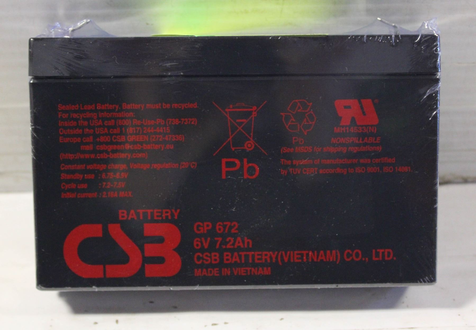 CSB SEALED LEAD ACID BATTERY 6V 7.2A NEW