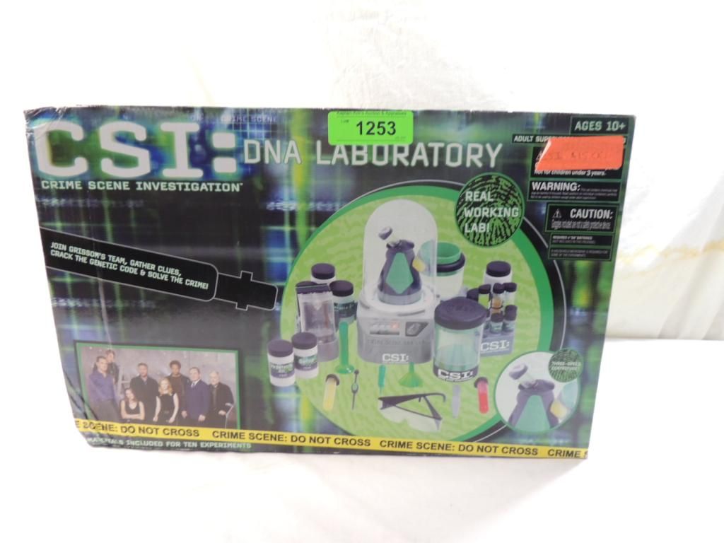 CSI DNA LABORATORY SCIENCE KIT JOIN CRISSOMS TEAM GATHER CLUES, GRACK THE GENETIC CODE AND SOLVE THE CRIME. MATERIALS INCLUDED FOR 10 EXPERIMENTS. REAL WORKING LAMB THREE SPEED SETRIFUGE. AS SHONW SEE PHOTO FOR MORE DETAILS.