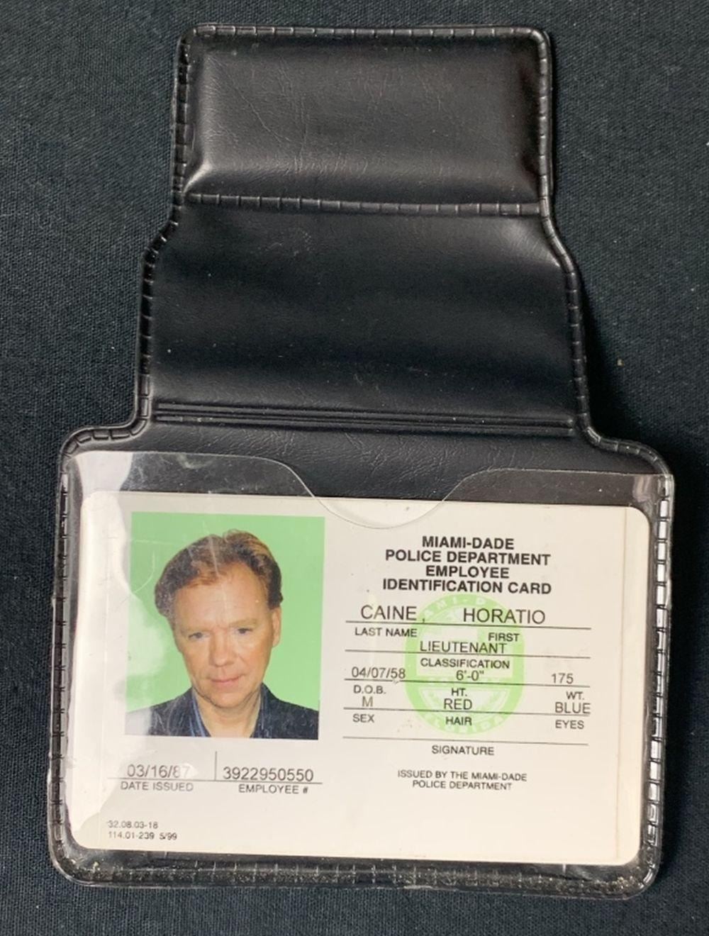 Original Miami-Dade Police Department employee identification card used by "Horatio Caine", played by David Caruso in the police procedural drama television series CSI: Miami (2002–2012), which follows a group of detectives assigned to the Miami-Dade Police Department's Crime Scene Investigations, an elite unit operating out of the (fictional) "Miami Dade police headquarters.
