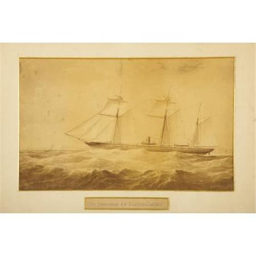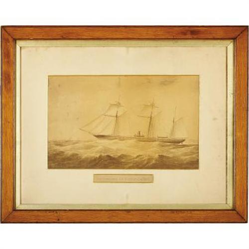 <B>THE CONFEDERATE S.S. </B></I><B><I>ALABAMA</B></I></B></I><B>, OR "290".</B></I> In 1862, John Laird Sons and Company of Liverpool, England built the screw sloop-of-war CSS <I>Alabama,</B></I> or “290”, for the Confederate States of America. Launched as <I>Enrica</B></I>, the vessel was fitted out as a cruiser and commissioned as CSS <I>Alabama</B></I> on 24 August 1862. Under Captain Raphael Semmes the <I>Alabama</B></I> spent the next two months capturing and burning ships in the North Atlantic and intercepting American grain ships bound for Europe. Continuing its path of destruction through the West Indies, the <I>Alabama</B></I> sank USS <I>Hatteras</B></I> near Galveston, Texas and captured its crew. After visiting Cape Town, South Africa, the <I>Alabama</B></I> sailed for the East Indies where it spent the next six months cruising for enemy shipping. While there, the formidable commerce raider destroyed seven more ships before redoubling the Cape of Good Hope and returning to Europe. On 11 June 1864 the <I>Alabama</B></I> arrived at Cherbourg, France and Captain Semmes requested the permission of city officials to dock and overhaul his ship. Three days later, the sloop-of-war USS <I>Kearsarge</B></I>, which had been pursuing the raider, arrived off Cherbourg and began patrolling just outside of the harbor. On June 19, the <I>Alabama</B></I> sailed out of Cherbourg to engage the <I>Kearsarge</B></I>. As the <I>Kearsarge</B></I> turned to meet its opponent, the <I>Alabama</B></I> opened fire. The <I>Kearsarge</B></I>’s crew waited until the distance between both vessels closed to less than 1,000 yards before returning fire. According to survivors of the battle, the two ships steamed on opposite circular courses as each commander tried to cross the bow of his opponent to deliver a heavy raking fire. The battle quickly turned against the <I>Alabama</B></I> due to the poor quality of its powder and shells; by contrast, the <I>Kearsarge</B></I> benefited from additional protection provided by chain cables along its sides. Approximately one hour after firing the first shot, the <I>Alabama</B></I> had been reduced to a rapidly sinking hulk. This is an albumen photo of a painting. With period frame. Overall measures approximately 25.25” x 20.25”. <BR><BR><B>Condition:</B></I> Very fine.<BR><BR><B>Provenance: </B></I><I>Lt. John Low CS Naval Officer on Board CSS Alabama</B></I><BR><BR><b>Shipping:</b> Framed - with Glass, Large (<a target="_blank" href="http://www.heritageauctions.com/common/shipping.php">view shipping information</a>)