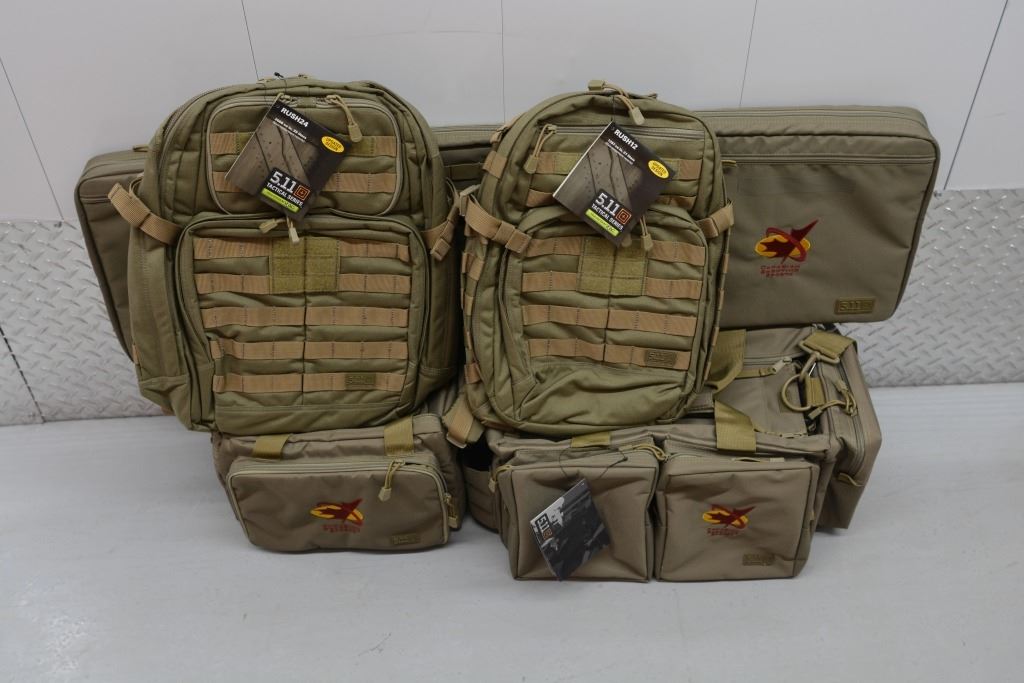 5.11 Tactical, Legacy branding, including: Rush 24 backpack, Rush 12 backpack, Range ready bag, Range qualifier bag and 42" single Rifle case. MSRP $750