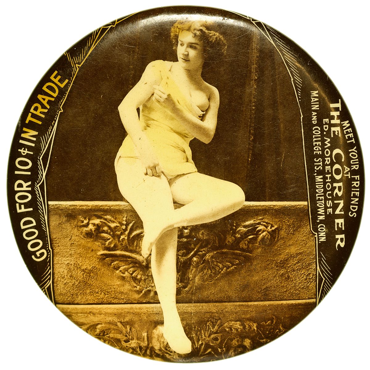This "Good for 10 cents in Trade" piece shows a rather zaftig woman in a camisole. Piece is in very good condition.
