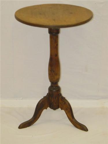 CT QUEEN ANNE MAPLE & PINE ROUND TOP CANDLESTAND W/ CABRIOLE LEGS & SHOE FEET (25 1/2" T X 17" W) - WEAR, RESTORATIONS & IMPERFECTIONS