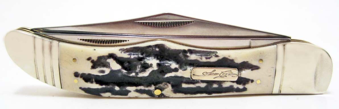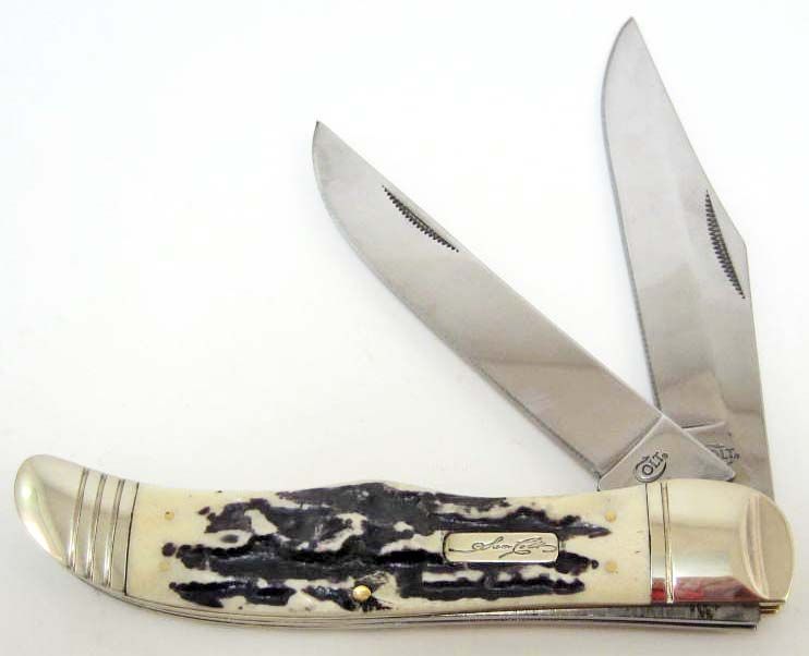 5 1/4" closed. Stainless clip and skinning blades. Black stag bone handles with pinched nickel silver bolsters and inlay shield. Comes in an attractive display box.