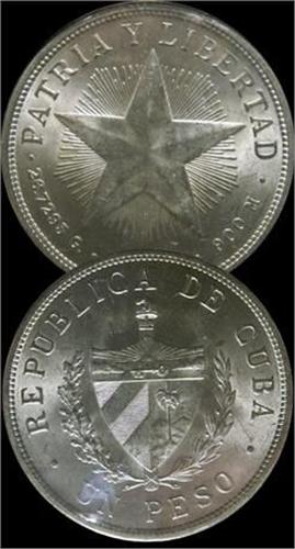 CUBA, 1934 Peso MS63 or better (KM#15.2) Fully brilliant and lustrous.