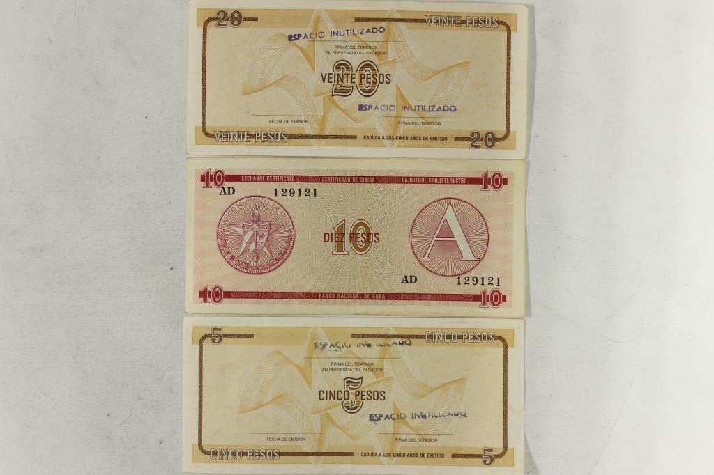 CUBA 5,10 & 20 PESOS FOREIGN EXCHANGE CERTIFICATES