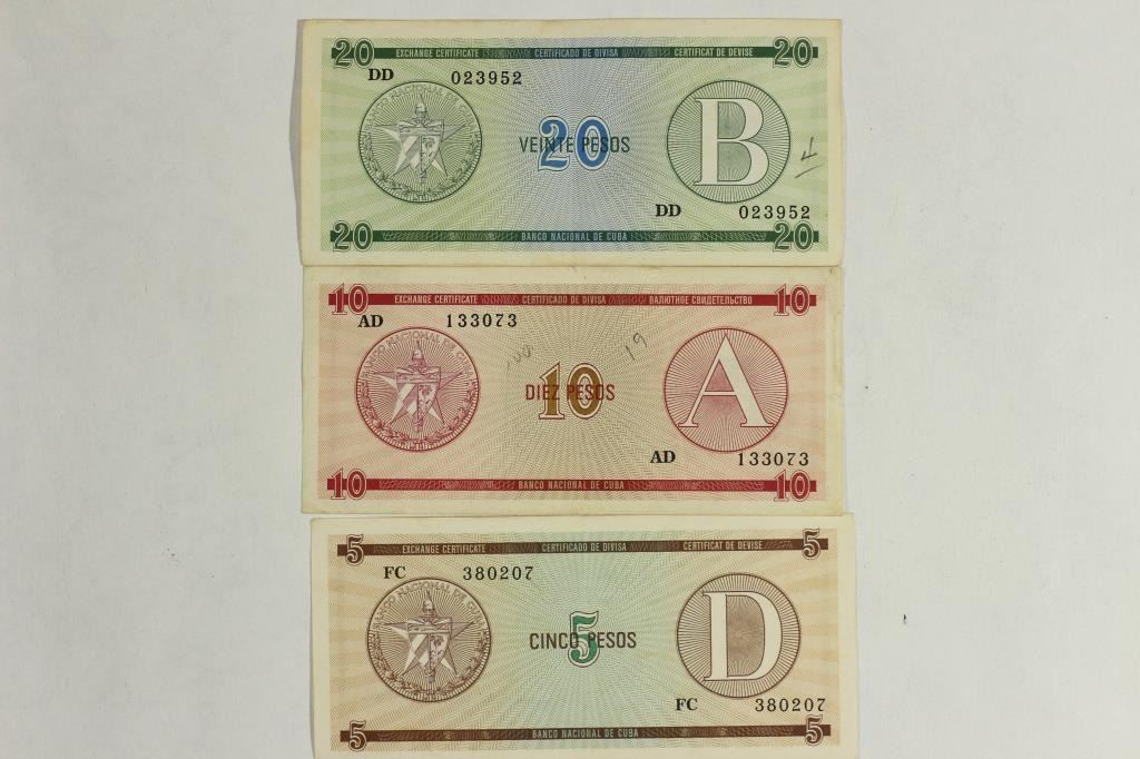 CUBA 5,10 & 20 PESOS FOREIGN EXCHANGE CERTIFICATES
