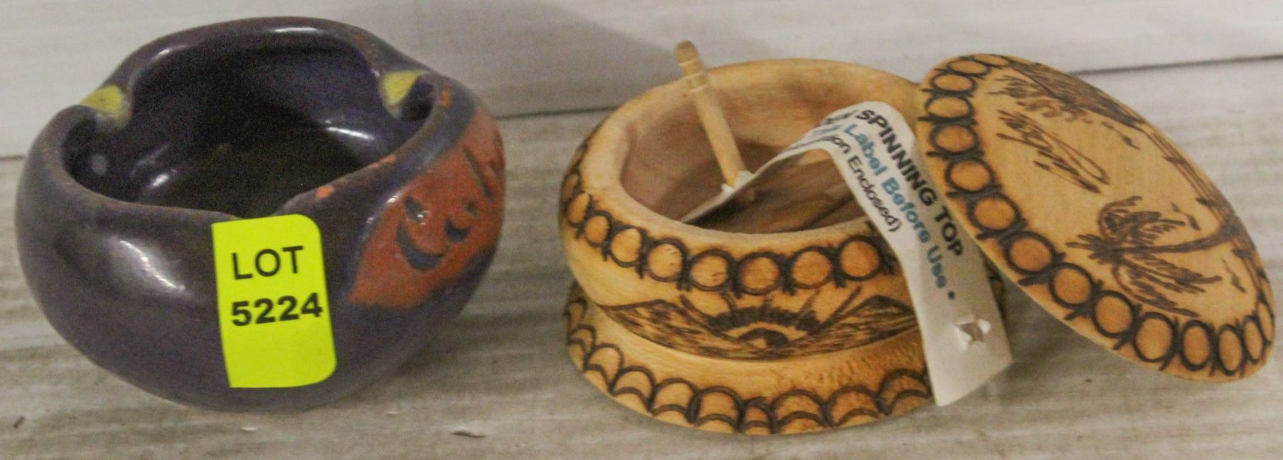 CUBA CERAMIC ASHTRAY AND WOODEN SPINNING TOP