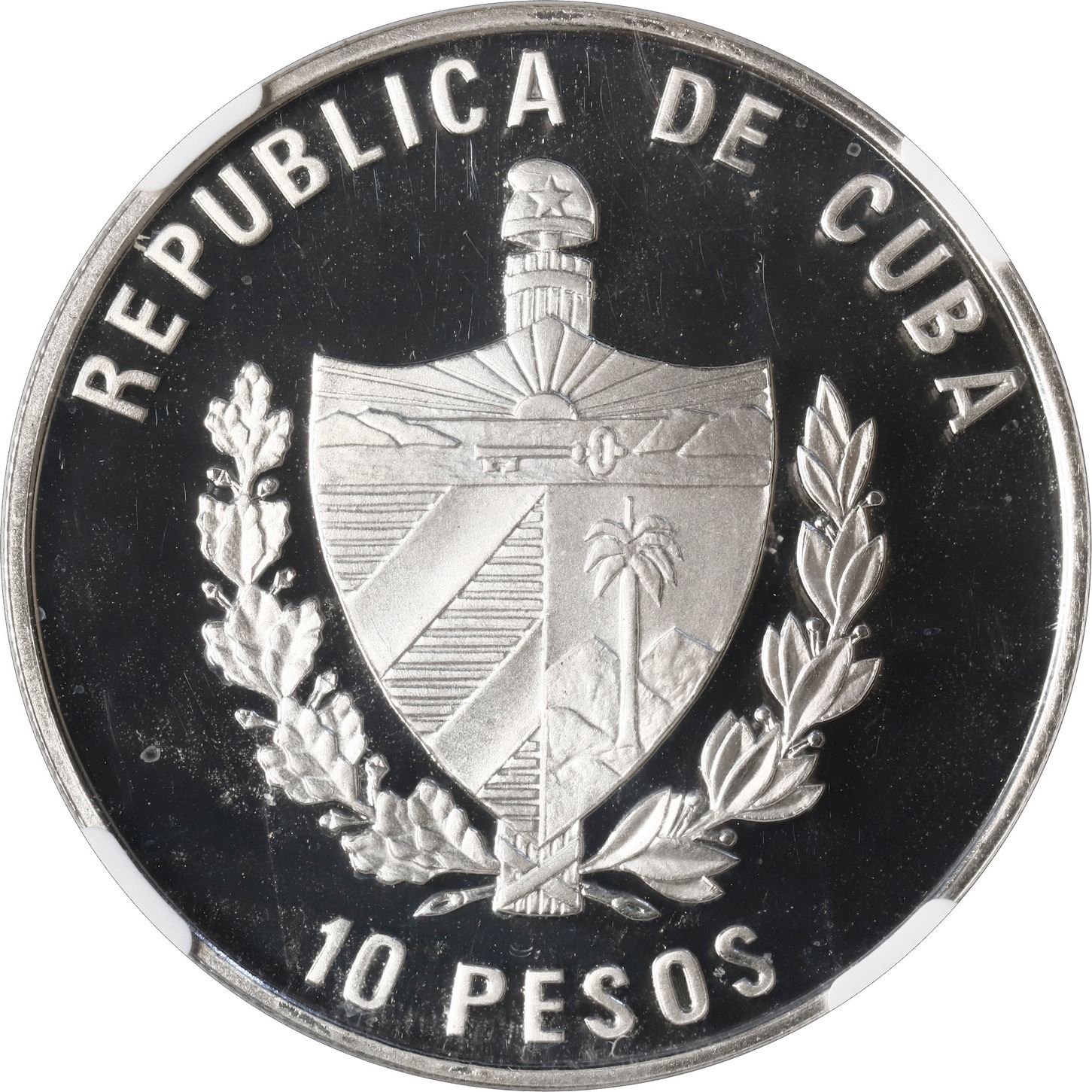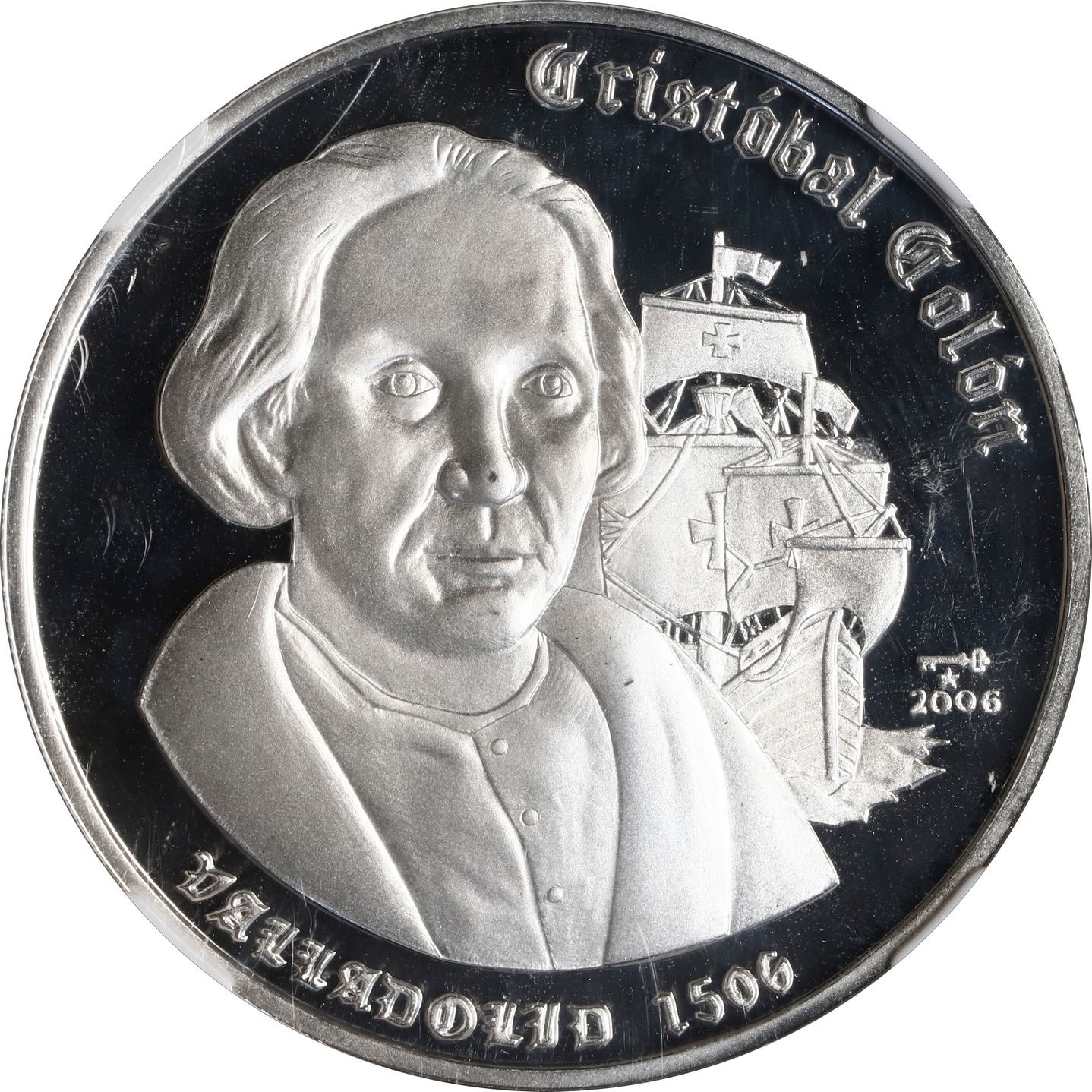 CUBA, Havana mint, proof 10 pesos, 2006, 500th Anniversary of the Death of Christopher Columbus, extremely rare, NGC PF 67 Ultra Cameo. KM-unl. Typical mirror proof with just a faint rub on the tip of the nose, currently among just three at NGC (tied with another for second finest behind a single PF 68). This commemorative coin marking the 500th anniversary of the death of the navigator and discoverer of the island of Cuba, Christopher Columbus, was officially struck by the Cuban Mint and released for one day before being withdrawn, as it was mistakenly issued without prior approval from the Central Bank of Cuba (hence not listed in any numismatic reference). Only six examples in silver and eleven in nickel were sold to collectors on the day of release, and these are the only pieces known on the market today.
