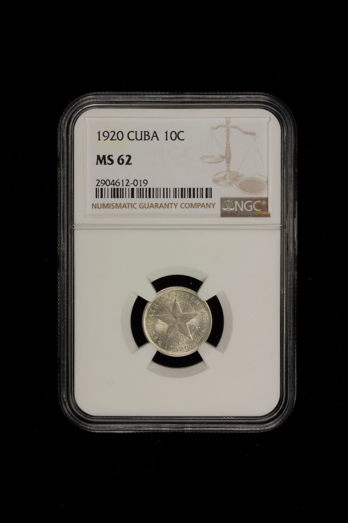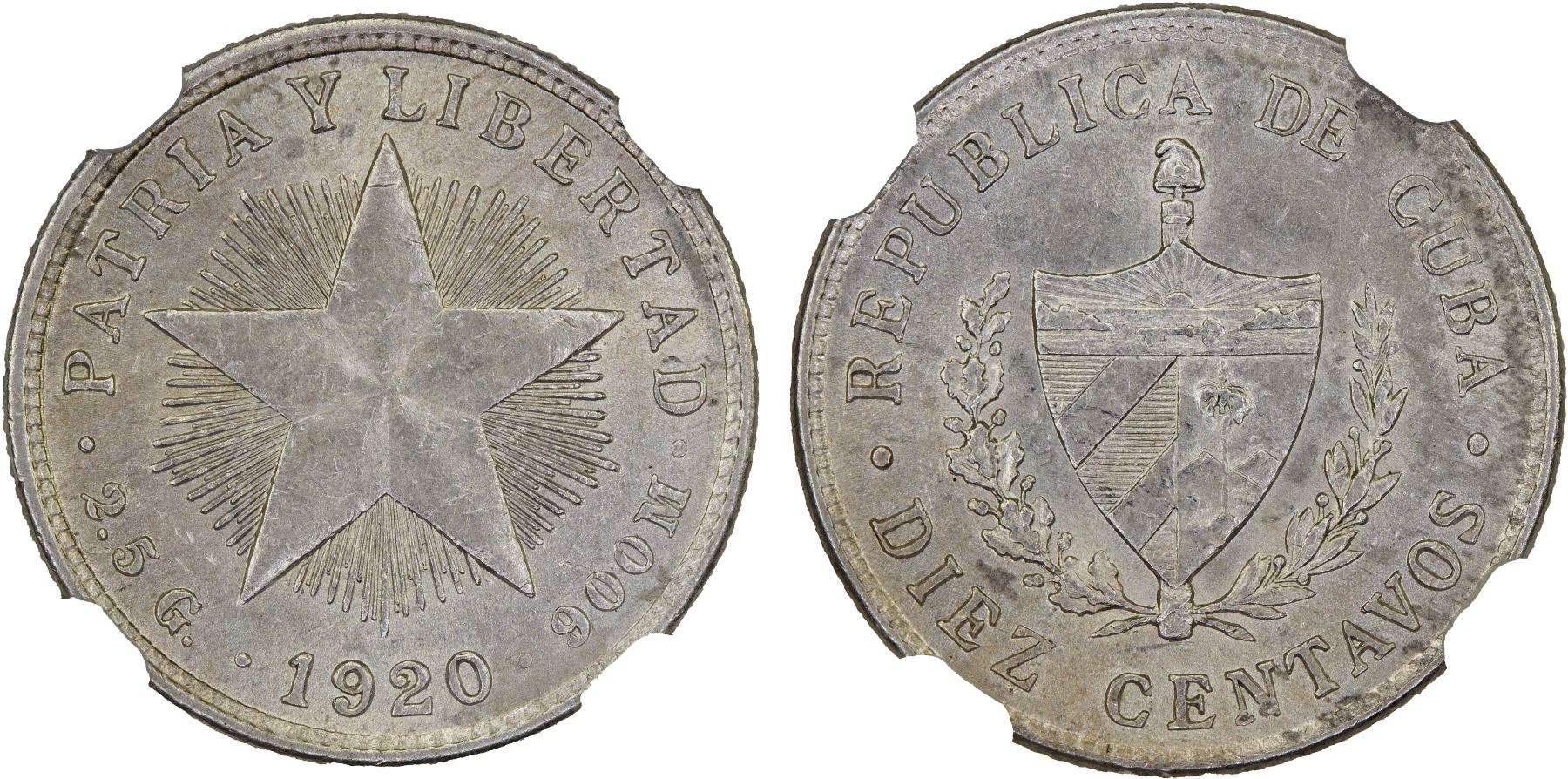 CUBA: Republic, AR 10 centavos, 1920, KM-12, struck at the United States Mint, Philadelphia, very lustrous, NGC graded MS62.