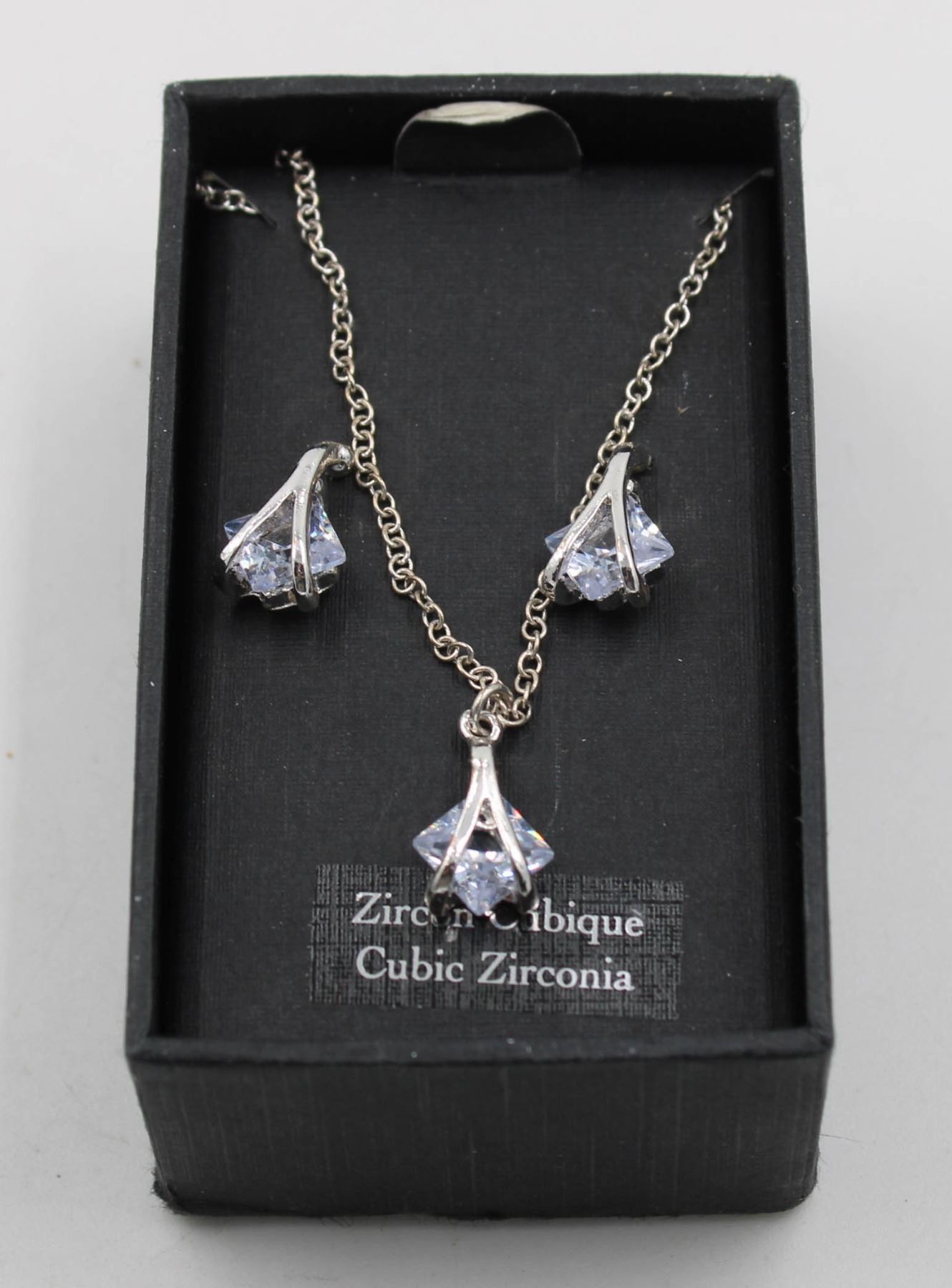 CUBIC ZIRCONIA EARRINGS & NECKLACE SET