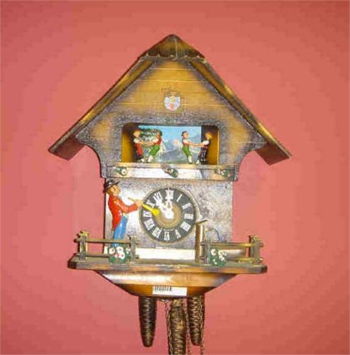 CUCKOO STYLE CLOCK WITH TRUMPETER & DANCERS