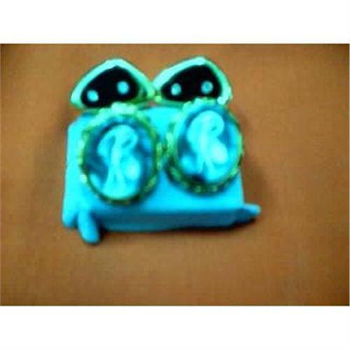 TWO PAIR OF CUFF LINKS:ONE PAIR IS OVAL ART NEVOUE STYLE NUD LADY ON CAMEO THE COLORS ARE GOLD AND GRAY SIGNED BY DANTE.SIZE IS 1"X1.1/4"----THE OTHER PAIR IS TRIANGLE BLACK ONEX AND GOLD COLOR METAL AND TWO CLEAR STONE.SIGNED BY SARAHCOV.THE SIZE IS 3/4"X1.1/8" AND PRICE IS FOR THE LOT